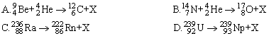 21、下列核反应方程中,符号“X”表示中子的是( )