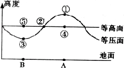 (3)A、B两处受热的是______,空气作______(上升或下沉)运动,冷却的是______ ,空气作_______(上升或下沉)运动。
