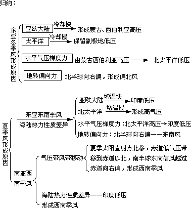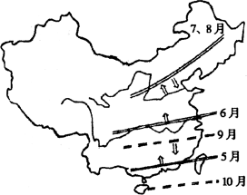 夏半年,随着西太平洋副热带高气压位置的进退和加强,夏季风的暖湿气流随之登陆北上,与北方的冷空气相遇,形成锋面雨带,5月份,使南部沿海进入雨季;6月中旬,雨带在长江中下游地区徘徊,进入梅雨季节;7月中旬,雨带北进到华北、东北地区;9月开始,西太平洋副热带高气压南退,雨季开始南移;10月,西太平洋副热带高气压在大陆上消失,雨季随之结束。