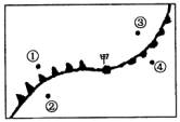 本题组考查综合分析能力。(1)题,图中①、②之间为冷锋,则②地为冷气团,③、④为暖锋则③为暖气团;(2)题,该图为锋面气旋,且为顺时针方向运动,可知该天气系统位于南半球,甲地盛行上升气流,②地风向、③地风向可根据图示判断。③地处位于暖锋锋后,而暖锋雨区位于锋前冷气团一侧。