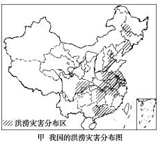 (3)由图甲可知我国洪涝灾害主要分布在东部季风区各大江河的中下游平原。此外,广大山区也常受到洪水侵袭。