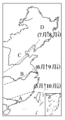 夏初、6月份 | 北纬20°左右 | 长江中下游(B) | |