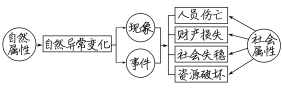 自然灾害具有明显的自然属性和社会属性。自然属性是指自然灾害是发生在自然界的异常现象,社会属性是指自然灾害会对人类社会产生危害。如下图所示: