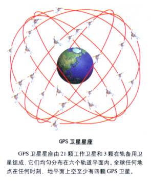 空间部分由24颗卫星组成,均匀分布在6个轨道平面,其中21颗是工作卫星,3颗备用卫星。在用GPS信号导航定位时,为了计算观测站点的三维坐标,必须观测4颗GPS卫星,这4颗卫星称为定位星座。