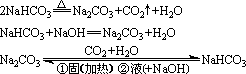 NaHCO3与盐酸反应一步完成:NaHCO3+HCl=NaCl+H2O+CO2↑
