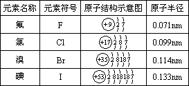 以上相似性、递变性的原因为卤素原子最外层的电子数为 7 ,且按 F、Cl、Br、I 的顺序,电子层数逐渐增多,原子半径逐渐增大,原子核对最外层电子的吸引力逐渐减弱。