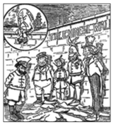 7.如图是20世纪初西方某刊物上登载的一幅有关中国的漫画。漫画中站在中国长城外的美国、英国、俄国等国正想象着中国政府从长城上摔下而四分五裂的情景。该漫画反映的历史事件是( )