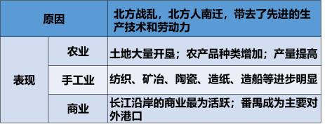 3.经济上,由于江南的开发,为经济重心的南移奠定了基础,南北经济趋向平衡;