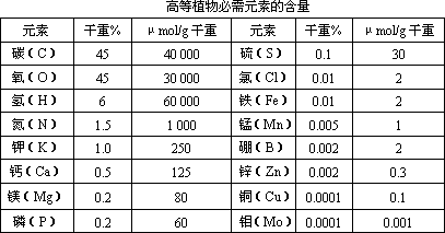 高等植物体内各种必需元素的含量如下表:
