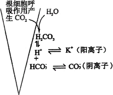 (1)根对矿质元素“交换吸附”过程 植物根细胞膜表面吸附的H+和HCO3-与土壤溶液中的矿质元素离子的交换吸附过程如下图所示: