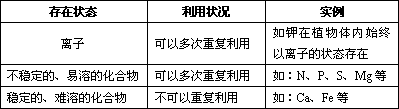 矿质元素离子被吸收进入植物体以后的存在形式和利用状况见下表: