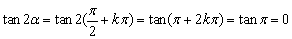 (k∈Z)时,显然tanα的值不存在,但tan2α的值是存在的,这时求tan2α的值可利用诱导公式,即: