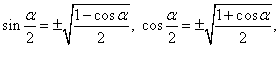 在倍角公式cos2α=1-2sin2α、cos2α=2cos2α-1中以α代替2α,以