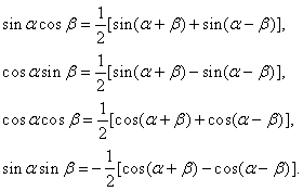 ,另外将公式S(α+β)减去S(α-β)、C(α+β)加上C(α-β)、C(α+β)减去C(α-β)可得出另三个公式,即得积化和差公式如下: