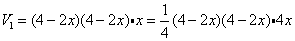 (1)设切去正方形边长为x,则焊接成的长方体的底面边长为4-2x,高为x,