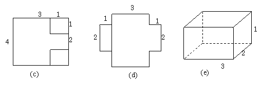 如图(c),在正方体的两个角处各切下一个边长为1的小正方体;如图(d),将切下的小正方形焊在未切口的正方形一边的中间;如图(e),将图(d)焊成长方体容器.