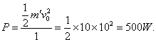 例3、喷水池喷出的竖直向上的水柱高h=5m.空中有水20dm3.空气阻力不计,则喷水机做功的功率约为___________W.(g取10m/s2)