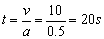 由运动学公式v=at有