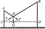 3、如图所示,长为5m的细轻绳两端分别系于竖直在地面上水平相距为4m的两杆的顶端A和B。轻绳上挂一个光滑的轻质挂钩,其下连接一个重为12N的物体,平衡时,绳中的张力为T=___________。