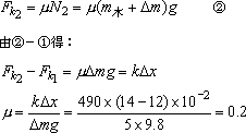 1、用劲度系数k=490N/m的弹簧沿水平方向拉一木板,用水平桌面上做匀速直线运动,弹簧的长度为12cm。若在木板上放一质量为5kg的物体,仍用原弹簧沿水平方向匀速拉动木板,弹簧的长度变为14cm。试求木板与水平桌面间的动摩擦因数μ。