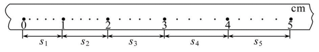 (1)在纸带中选择一条最清晰的,舍掉开头一些比较密集的点迹,在后边便于测量的地方找一个开始点,为了测量方便和减小误差,通常选择相隔0.1s的若干计数点进行测量,在选好的第一个点下面标明0,在第六个点下面标1,在第十一个点的下面标2,依此类推,每隔4个点下面计一个数,这些标数字的点叫作计数点。如图所示,测出两相邻计数点的距离分别为s1、s2、s3…填入表中。