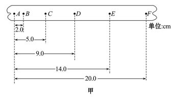 D、E、F六个计数点,相邻两计数点之间还有四个点未画出。