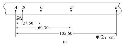5.在探究小车速度随时间变化规律的实验中,得到如图甲所示的一条记录小车运动情况的纸带,图中A、B、C、D、E为相邻的计数点,相邻计数点间的时间间隔T=0.1 s。