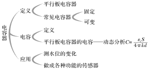 1.知道电容器的概念,认识常见电容器。 2.理解电容的概念及定义方法。 3.知道平行板电容器的电容,并了解影响电容器电容大小的因素。 | 1.应用电容的定义式进行简单的计算,体会比值定义的方法。 2.知道改变平行板电容器电容大小的方法。 | 观察电容器的充、放电现象,探究影响平行板电容器电容大小的因素。 | 体会电容器在实际生活中的广泛应用,培养探究新事物的兴趣。 |