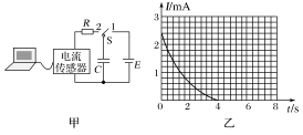 7.用电流传感器可以记录电流的瞬时变化,从而可以观察到电容器的充、放电情况,按照如图甲连接电路,可以观察到电容器的放电情况,操作过程如下:先将开关S接1,进行充电,充电完毕后,再将开关S接2,电容器将放电,放电过程中,电路中电流和时间的关系如图乙所示,已知电源两极间的电压为5 V,则由图线可知( )