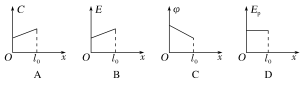 8.一平行板电容器充电后与电源断开,负极板接地,两板间有一个正检验电荷固定在P点,如图所示,以C表示电容器的电容、E表示两板间的场强、φ表示P点的电势,Ep表示正电荷在P点的电势能,若正极板保持不动,将负极板缓慢向右平移一小段距离l0,则下列关于各物理量与负极板移动距离x的关系图像中正确的是( )