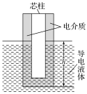 A.该仪器中电容器的两个电极分别是芯柱和导电液体