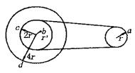 例1、(1992年全国高考)如图所示,为一皮带传动装置,右轮的半径为r,a是它边缘上的一点,左侧是一轮轴,大轮的半径为4r,小轮的半径为2r,b点在小轮上,到小轮中心的距离为r,c点和d点分别位于小轮和大轮的边缘上,若在传动过程中,皮带不打滑,则( )