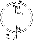 例3、(1997·全国)一内壁光滑的环型细圆管,位于竖直平面内,环的半径R(比细管的半径大得多),在圆管内有两个直径与细管内径相同的小球(可视为质点),A球的质量m1,B球质量m2,经过最低点的速度均为v0,设A球运动到最底时,B球恰好运动到最高点,若此时两球作用于圆管的合力为0,那么m1、m2、R和v0应满足的关系式为什么?