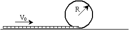 例6、如图所示,游乐列车由许多节车厢组成。列车全长为L,圆形轨道半径为R,(R远大于一节车厢的高度h和长度l,但L>2πR).已知列车的车轮是卡在导轨上的光滑槽中只能使列车沿着圆周运动而不能脱轨。试问:列车在水平轨道上应具有多大初速度V0,才能使列车通过圆形轨道?