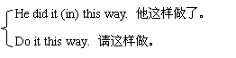 在祈使句中,表示“方法,手段”的way不与in连用,请比较: