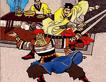 故事的发展和高潮是“鸿门宴”上的斗争(第 3、4段),刘项双方的矛盾和项羽内部杀不杀刘邦的矛盾错综交织,使情节险象环生,跌宕起伏。范增数目项王,项庄拔剑起舞欲刺沛公,樊哙愤而闯帐,怒斥项王,使气氛紧张到极点。而项羽对范增的暗示“默然不应”,对樊哙的怒斥“未有以应”,对项庄、项伯的拔剑起舞听之任之,又使情节由紧张而松弛。