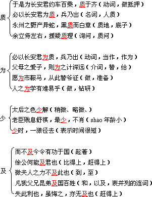 (一)掌握《触龙说赵太后》文中通假字、古今异义、重要实词和虚词以及一词多义。